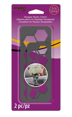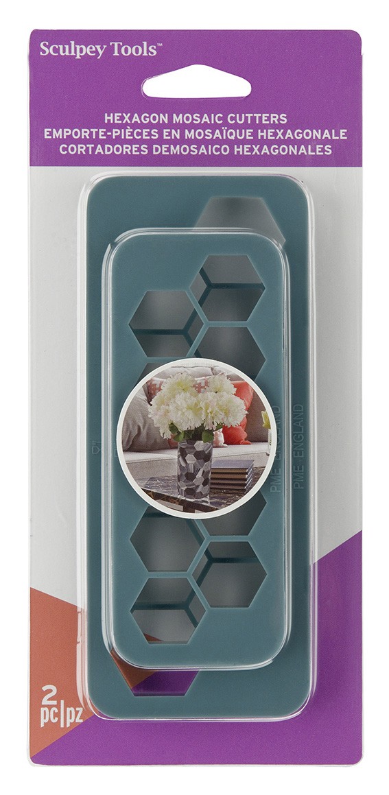 Le set hexagonal Mosaic cutters Sculpey contient 2 emporte-pièces hexagonaux en plastique de tailles différentes. Ils mesurent 1,9 et 2,5 cm.