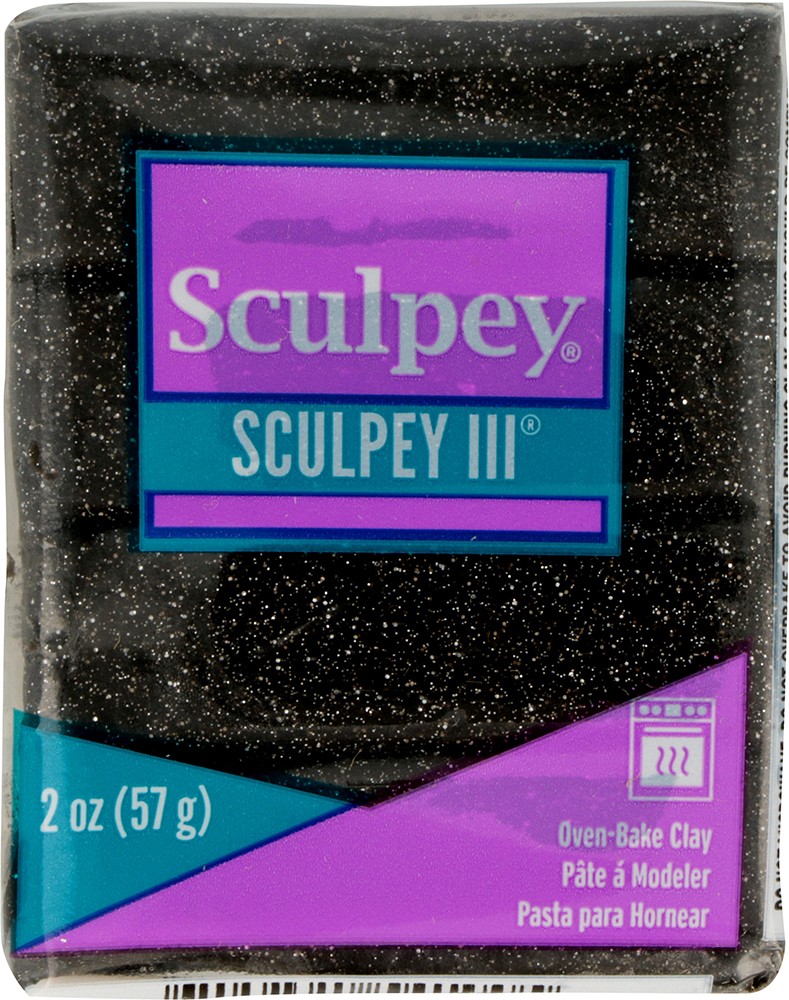 La pâte polymère 541 Sculpey Black glitter pèse 57 gr.