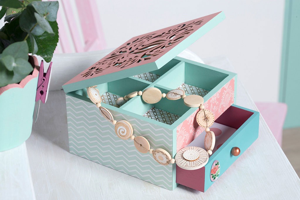 La boîte à bijoux Artemio mesure 16x16x10 cm.