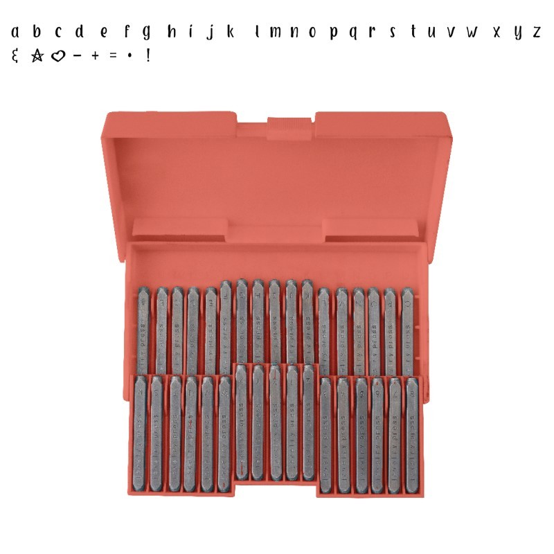 De set alfabet stamps (60000319) van We R Memory Keepers is een set stempels om te gebruiken met de jewelry press.De rode opbergdoos bevat 35 stempels met het alfabet in kleine letters en symbolen.Graveer je sieraden, sleutelhangers of andere metalen voorwerpen met de jewelry press drukpers!