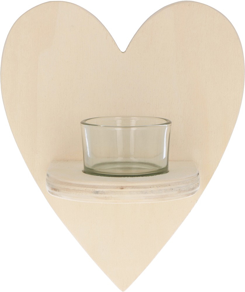 De hartvormige kaarsenhouder van Artemio bestaat uit een hartvormige plank en een glazen kaarsenhouder.
