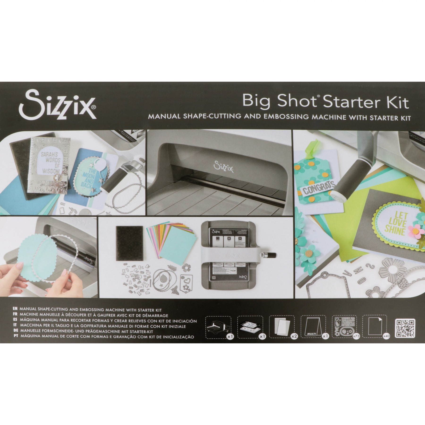 De Sizzix Big shot starterkit (667086) is een snijmachine in A5-formaat. De machine meet ongeveer 35,5 x 25,5 x 20 cm.Hij wordt geleverd met een 15,24 cm breed platform, een adapter, 2 standaard snijplaten. 73 thinlits snijmallen waaronder 1 alfabet, 1 3D embossing plaat, 1x pak weelderig getextureerd cardstock in een assortiment van kleurenHet is compact, duurzaam en innovatief, met een slank, modern ontwerp, gebouwd voor langdurige prestaties, een ergonomische clip-on handgreep die kan worden opgeborgen onder de machine en een anti-slip basis. Deze machine snijdt de volgende materialen: papier, spons, rubber, magneten, stof, ...Van kaarten maken en scrapbooking tot grote papercraft en interieur projecten, de Big Shot levert precisie, kracht en prestaties waar u op kunt rekenen, elke keer weer!
