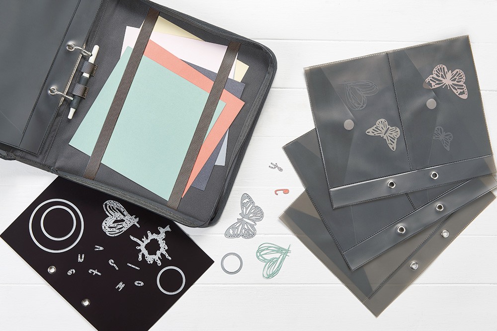 De Sizzix map (662108) meet 30x35x8 cm. Het is voorzien van een rits en een handgreep.