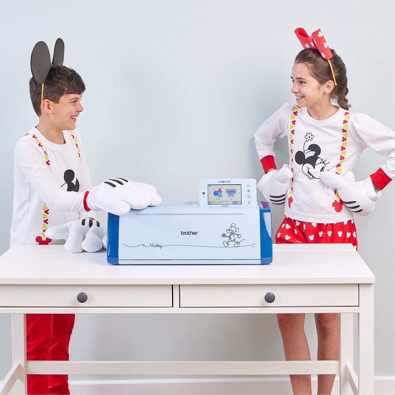 De starterskit van de Scan N Cut DX 2250 Disney-snijmachine van Brother (SDX2250DXX1) bevat een zelfinstellend snijmes (met houder), een zelfinstellende roterende snijmeskit en 63 patronen (op activeringskaart), een standaard snijmat van 305 x 305 mm , een snijmat met lage hechting van 305 mm x 305 mm (12“ x 12”), een zelfklevend vel met hoge hechting voor stof (1 stuk), een pennenhouder en set van 2 uitwisbare pennen, een accessoiretasje met spatel en stylus, een startgids en kartonstaalHiermee kunt u scannen, creëren, embossen, overbrengen, schrijven, tekenen, zelfklevende vinylstickers en thermotransferafbeeldingen uitsnijden. Met 182 Disney-motieven, waaronder 30 magische motieven die u nergens anders vindt, 63 nieuwe motieven voor zelfinstellend roterend mes, 170 quiltblokken en applicatiemotieven. Het apparaat is uitgerust met een groot kleuren-touchscreen van 12,7 cmSnijd tot maximaal 3 mm dikte, allemaal op één machine, zonder cartridge, computer of mobiel apparaat.Dankzij de draadloze WLAN-connectiviteit en de geïntegreerde USB-poort kunt u bestanden rechtstreeks vanaf uw ScanNCut overzetten, waaronder PES/PHX/PHC-bestanden (borduurbestanden) en SVG-bestanden.